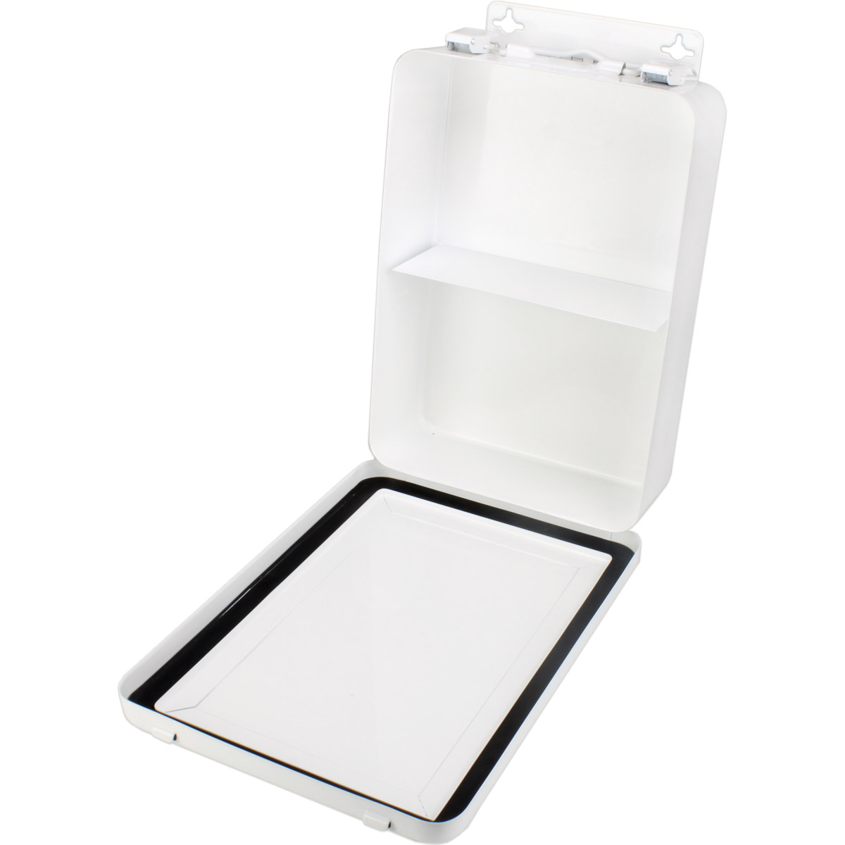 10 Unit, Empty Metal Case w/ Hanger & Gasket, 7-1/2"x4-1/2"x2-3/8", Horizontal - 1 Each This horizontally configured empty metal first aid case holds up to 10-units of product and features a hanger and gasket. Kit Dimensions: 7-1/2"x4-1/2"x2-3/8"