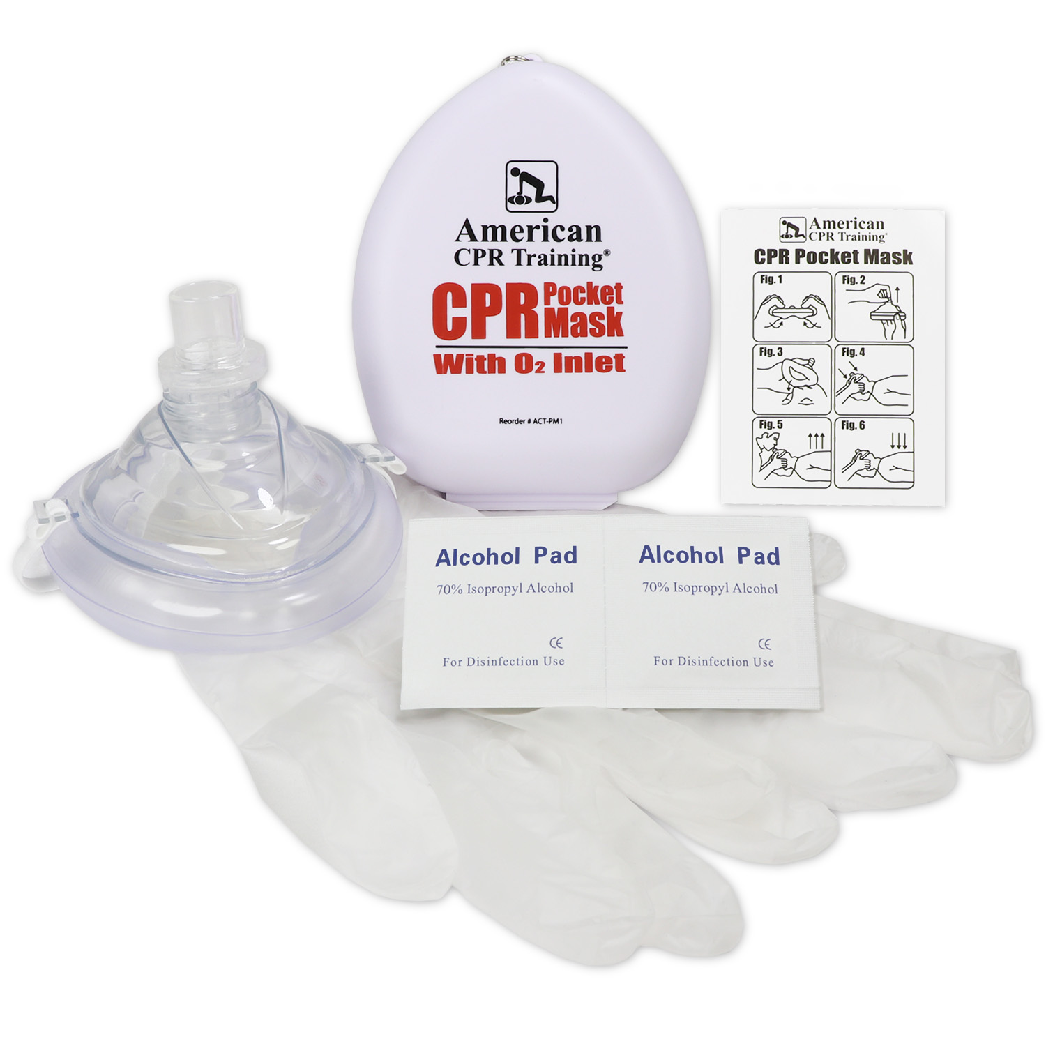 American CPR Pocket Mask, Plastic Case, Adult/Child/Infant with O2 Inlet